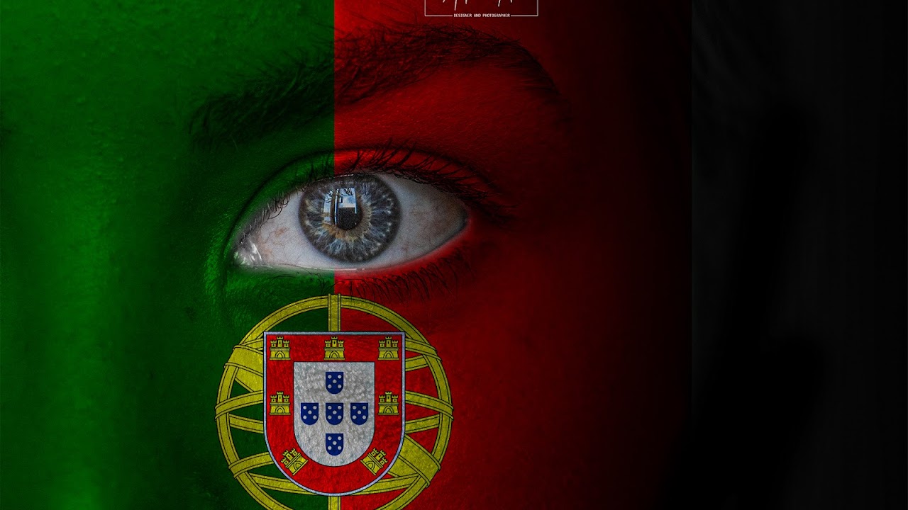 Photo of the flag of Portugal on the face of a Child background